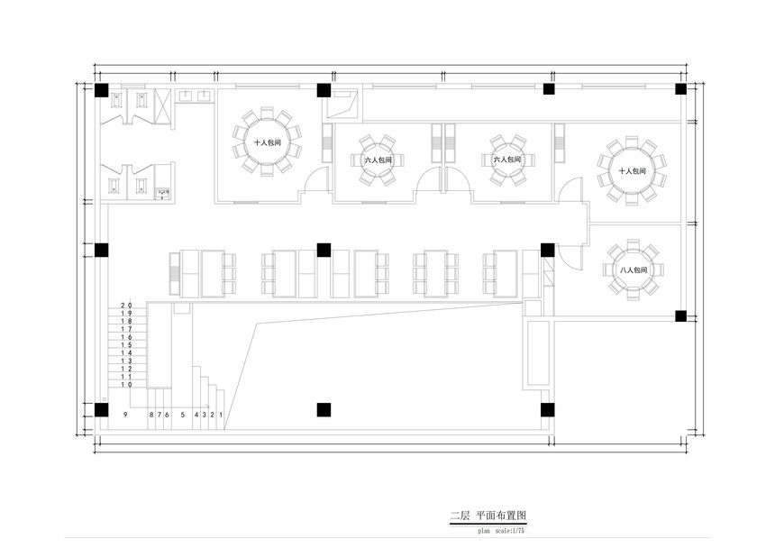二層的斜面拱頂, 猶如鼓起的風帆, 讓人心境瞬間豁達。 在空間被延展的同時, 層次感撲面而來。 包間的窗與門仍以拱形來呈現, 不同材質的肌理與燈光融合, 濃淡相宜。