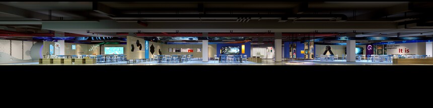 在光影的帶動(dòng)下,所有人一進(jìn)來會(huì)有很強(qiáng)的視覺感受。順著動(dòng)線不斷向前,關(guān)注科學(xué)和技術(shù)的同時(shí),參與性極強(qiáng)的互動(dòng)裝置,也是寓教于樂。半圍合的組成模式讓整個(gè)空間模塊之間的連而不斷,也使內(nèi)外空間富有趣味和層次,為教學(xué)空間創(chuàng)造了更豐富的可能性,更加切合科學(xué)教育的主題要求。