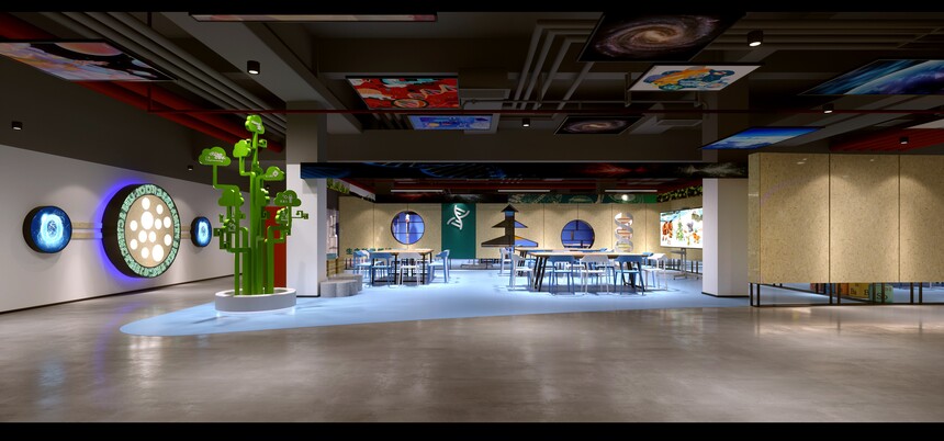 浐灞六小少年科學(xué)院項(xiàng)目名稱:浐灞六小少年科學(xué)院 項(xiàng)目地址:西安市灞橋區(qū) 項(xiàng)目面積:2000平 科學(xué)是神秘的,是偉大的,還有更多的未知領(lǐng)域,等待著我們?nèi)ヌ綄ぱ芯浚覀冃枰粋(gè)不一樣的教室和可操作的課程,讓學(xué)生對這個(gè)神秘的未知領(lǐng)域充滿探尋的興趣,并樂于學(xué)習(xí)和分享。 頂部 弧形LED發(fā)光燈帶結(jié)合深色裸露線管,營造出剛?cè)岵?jì)的室內(nèi)光環(huán)境,錯(cuò)落有致的弧形墻無疑加強(qiáng)了立面的流動(dòng)感,使空間更具動(dòng)態(tài)。
